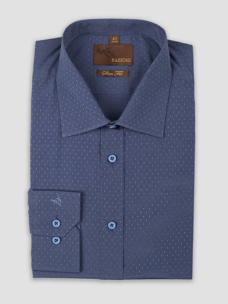 Slim fit, воротник - классический, манжеты с усеченными углами, застежка - ложная планка 3см