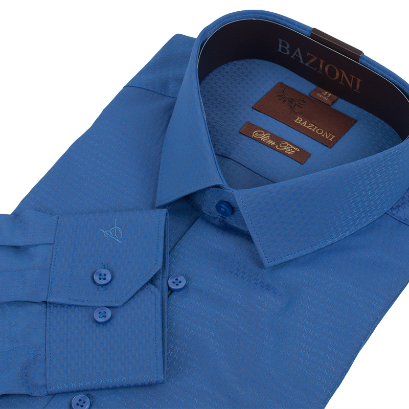Slim fit, воротник-узкий, манжет на две пуговицы.