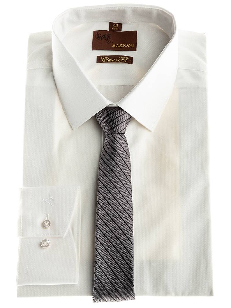 Slim fit, воротник - классический, манжет - универсальный под запонку, застежка - ложная планка