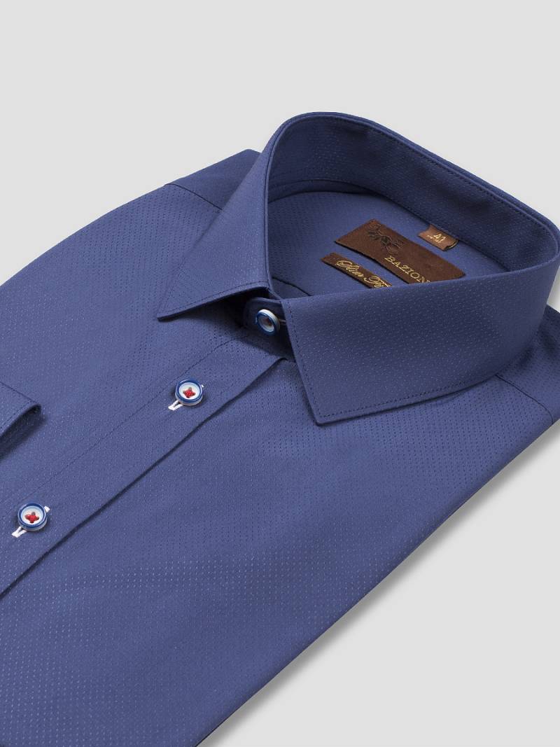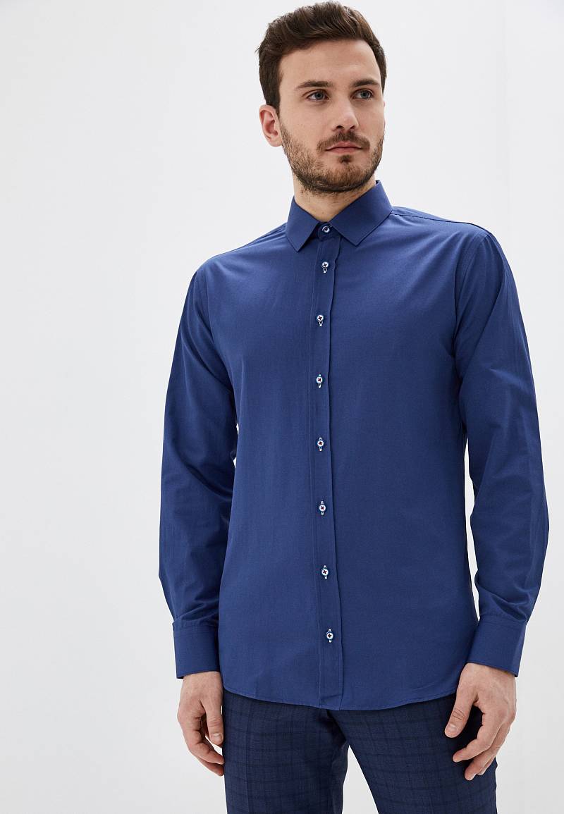 Slim fit. воротник-классический, манжет с закругленным краем на две пуговицы, застежка - ложная планка