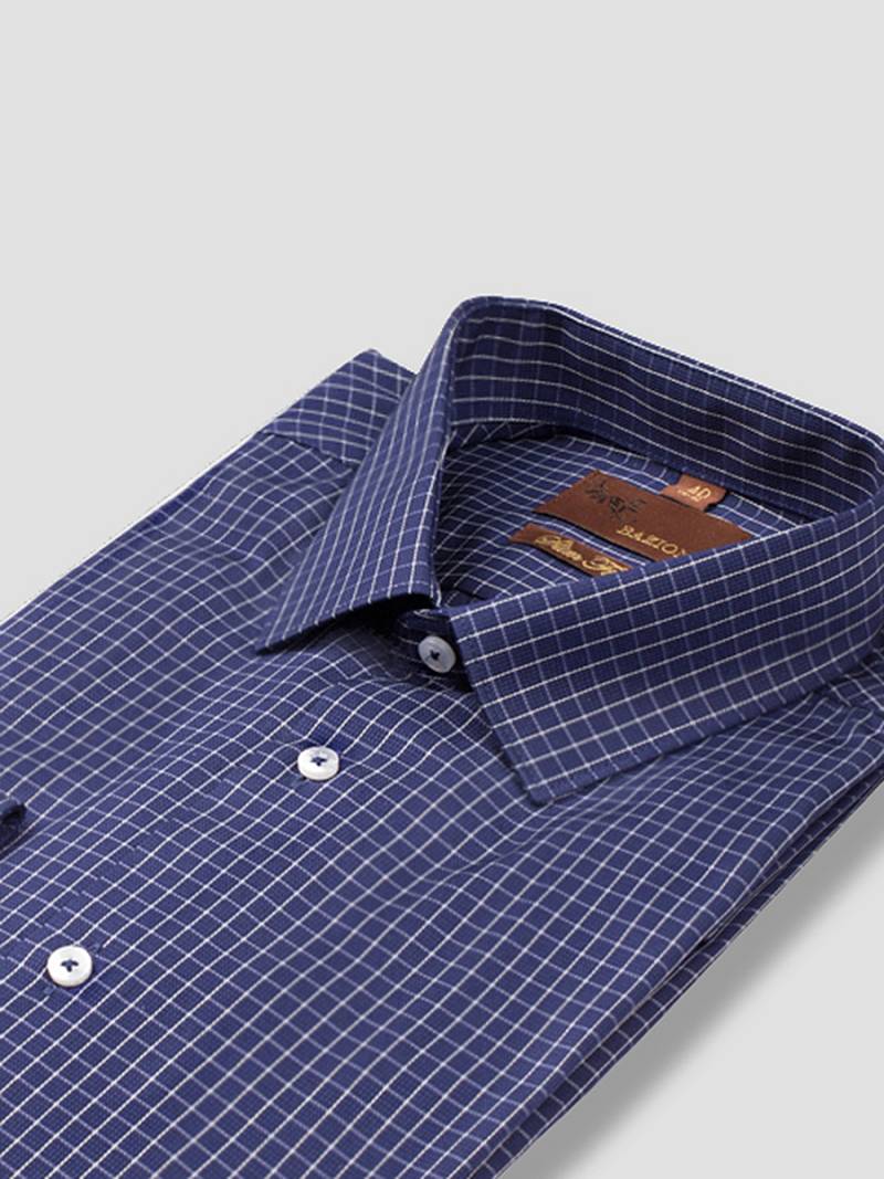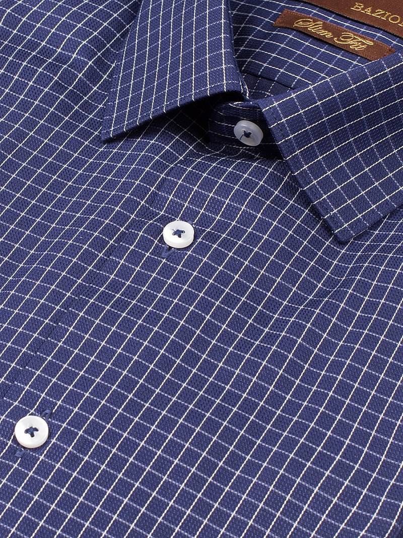Slim fit, воротник - классический, манжет с усеченным углом, застежка - без отделки.