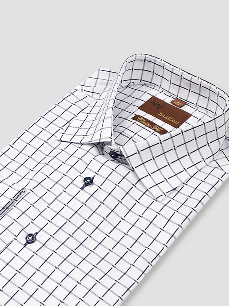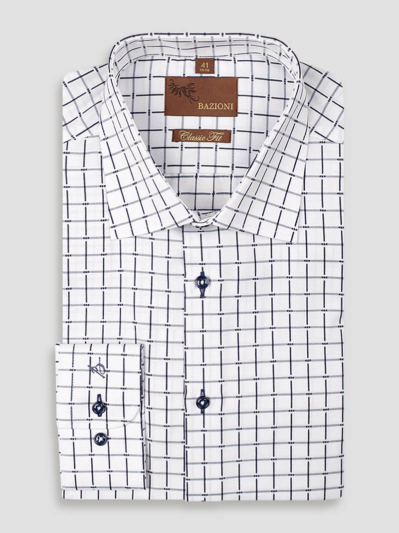 Classic fit, воротник- классический, манжет с закругленным углом на двух пуговицах, застежка - без отделки.