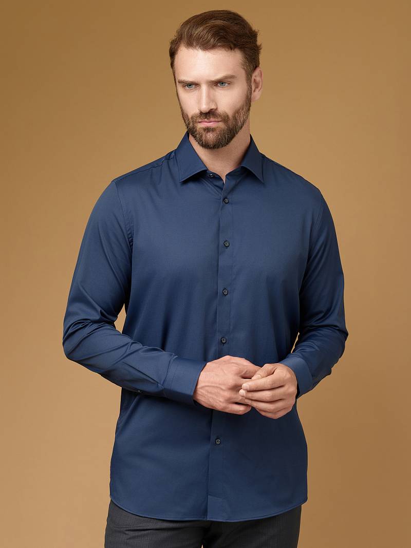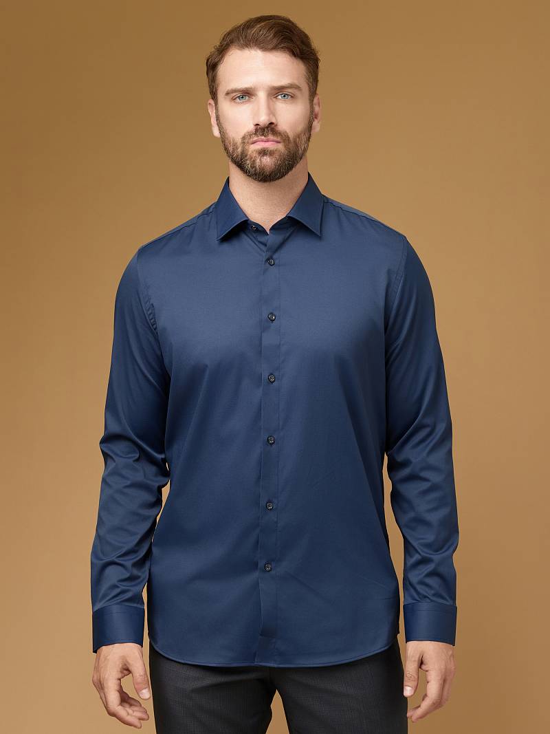 Сорочка мужская, Slim fit, воротник-классический, манжет со скошенными концами, застежка - без отделки.