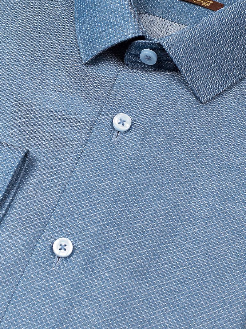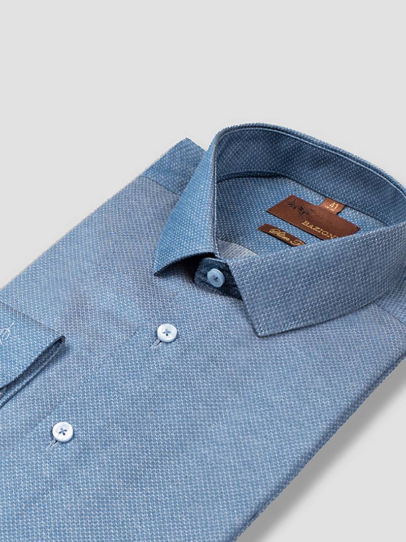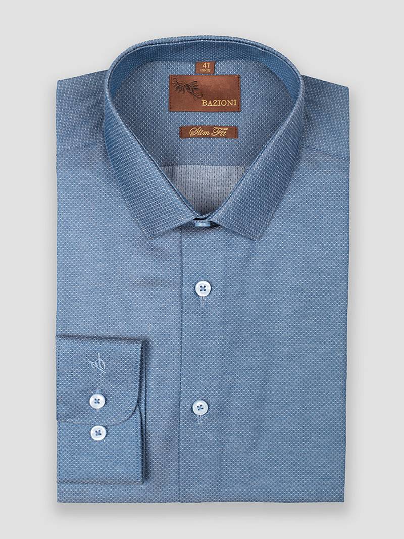 Slim fit, узкий воротник, манжет с закругленными краями на две пуговицы, застежка- без отделки