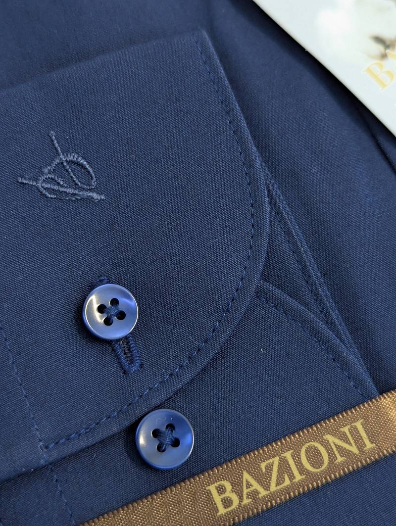 Slim fit, Воротник-акула, манжет на две пуговицы, скругленный угол. застежка без отделки