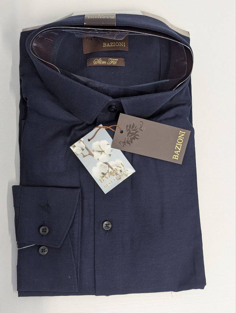 Slim fit, узкий воротник, манжет на две пуговицы..