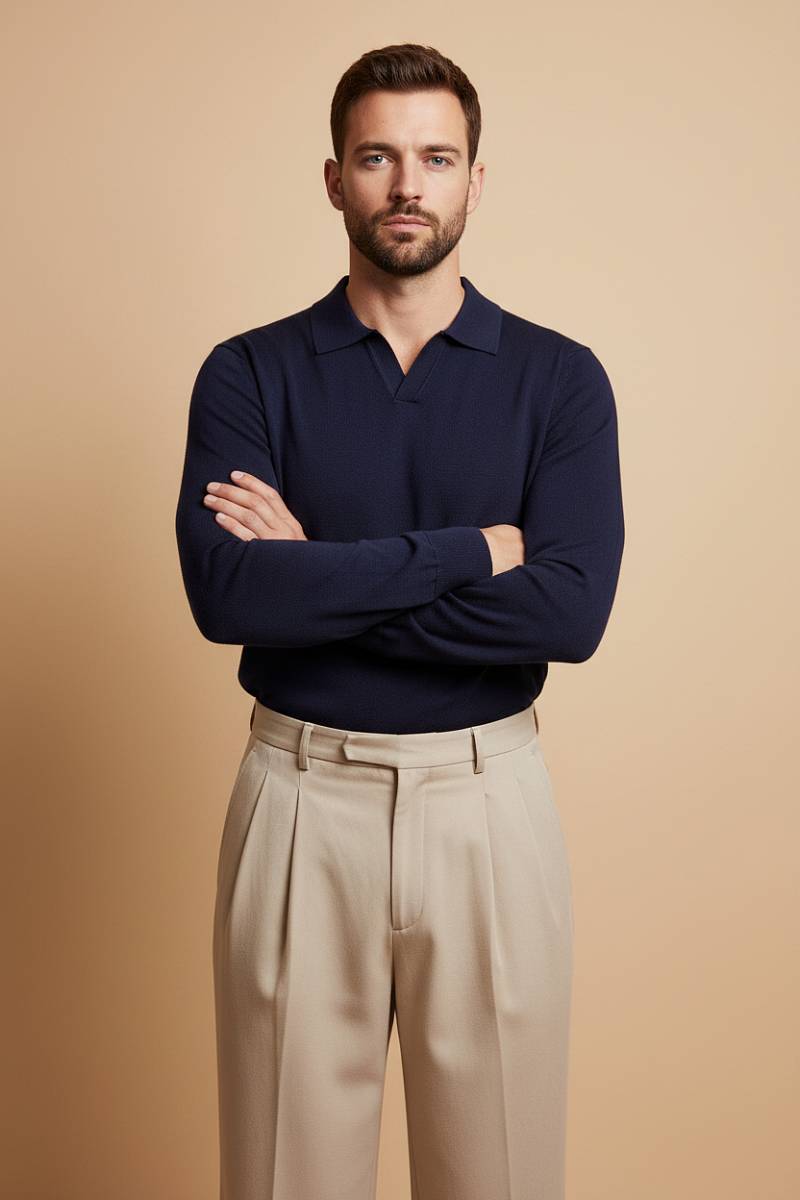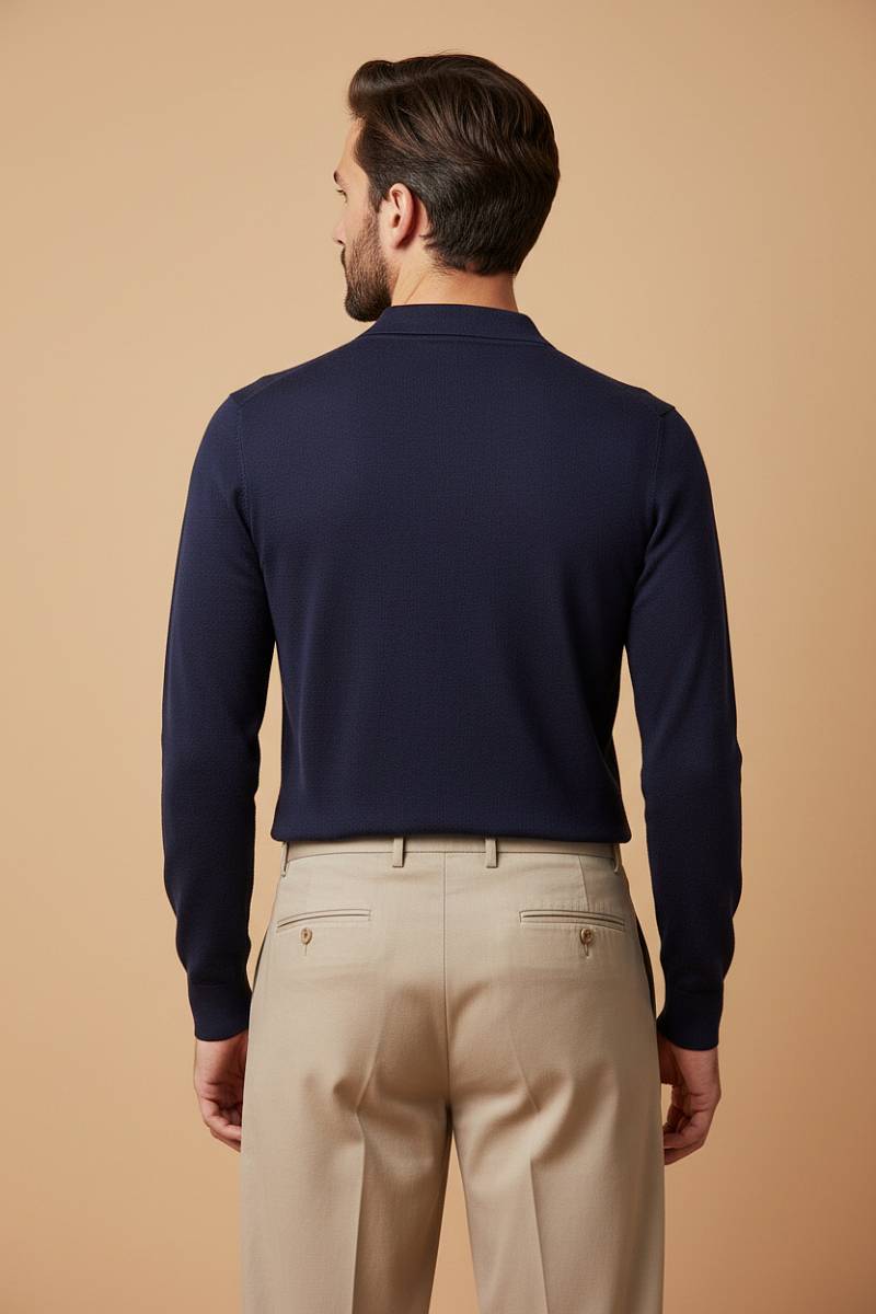 Классический воротник поло придаёт образу элегантность и делает модель универсальной для разных стилей. Лаконичный дизайн позволяет легко сочетать джемпер как с деловыми брюками, так и с более расслабленными образами.