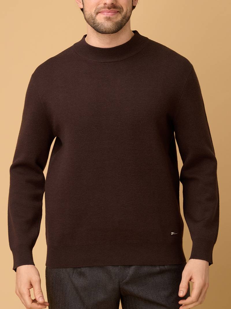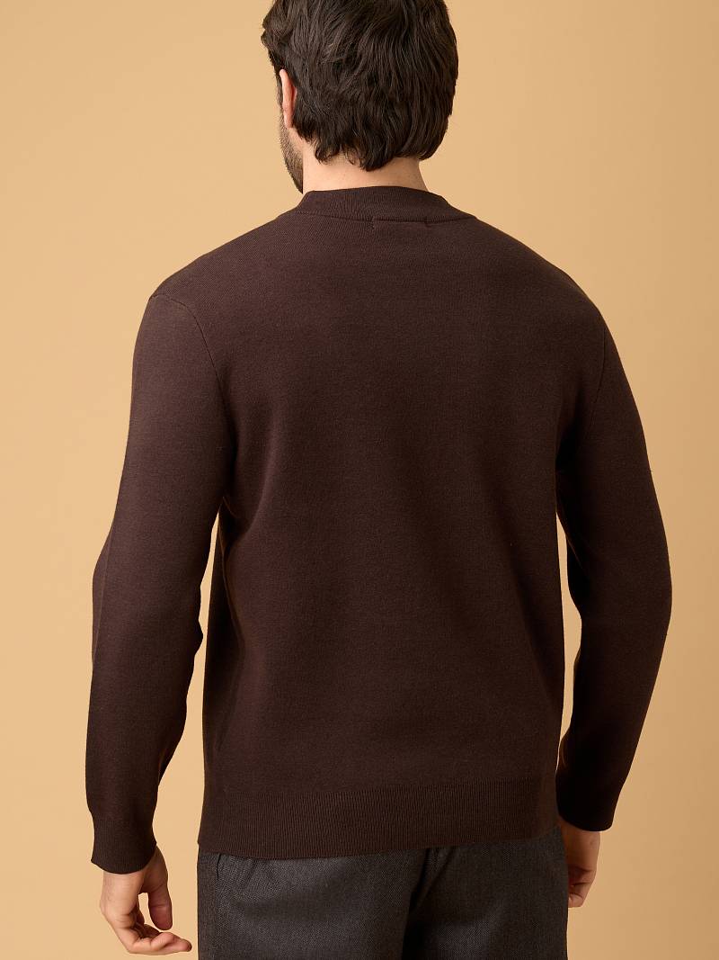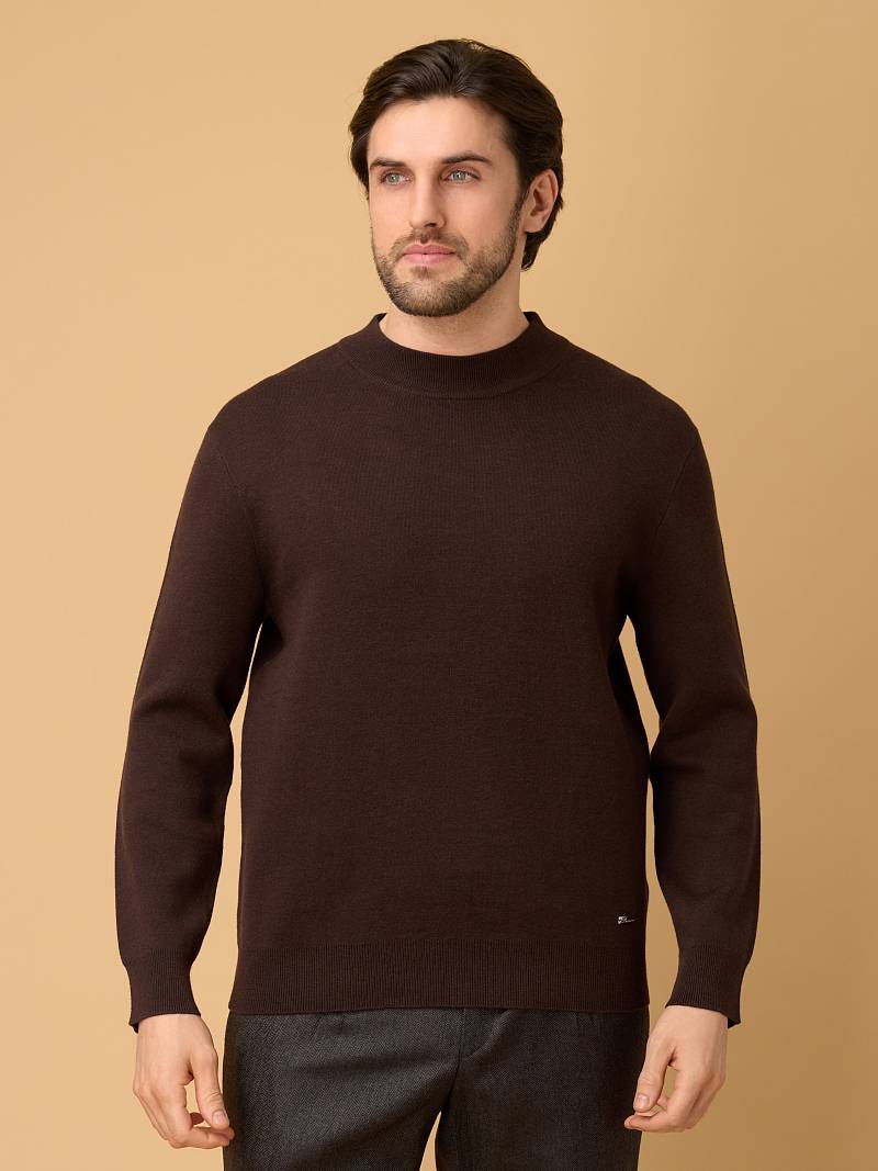 Глубокий коричневый цвет придаёт изделию благородство и универсальность, позволяя легко сочетать джемпер как с классическими, так и с повседневными образами.