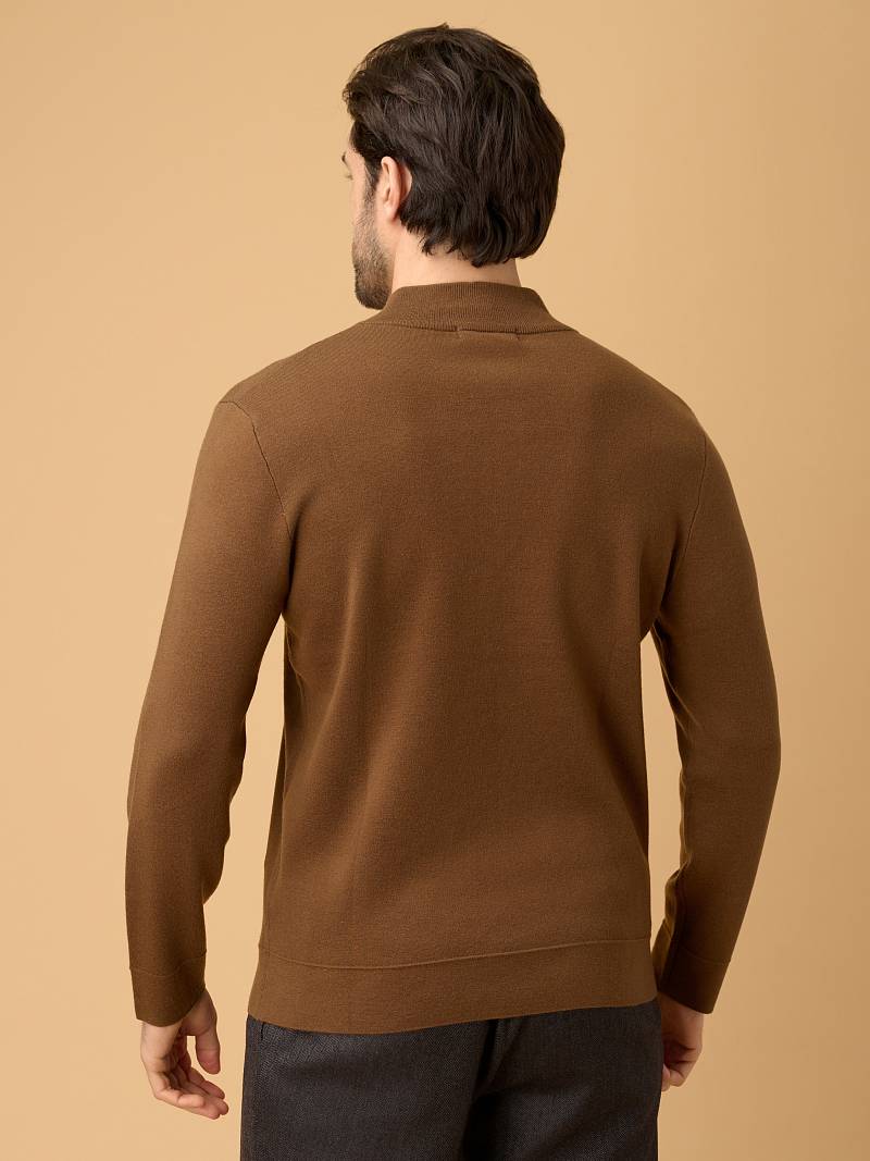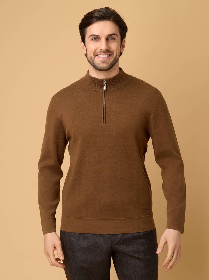 Джемпер от марки BAZIONI — стильная база для современного гардероба с акцентом на комфорт и элегантность.Модель выполнена из качественного смесового материала: 85% шерсть и 15% акрил, что обеспечивает отличное тепло, мягкость и практичность. Ткань хорошо держит форму и остаётся аккуратной даже при активной носке.Глубокий коричневый цвет придаёт образу благородную сдержанность и универсальность, легко сочетаясь как с классическими, так и с повседневными элементами гардероба.Лаконичный дизайн дополнен воротником-стойкой с молнией, который добавляет современный акцент и удобство. Чистый силуэт и продуманный крой подчёркивают фигуру, создавая аккуратный и уверенный образ.Идеальный выбор для тех, кто ценит практичную роскошь, универсальность и безупречный стиль.