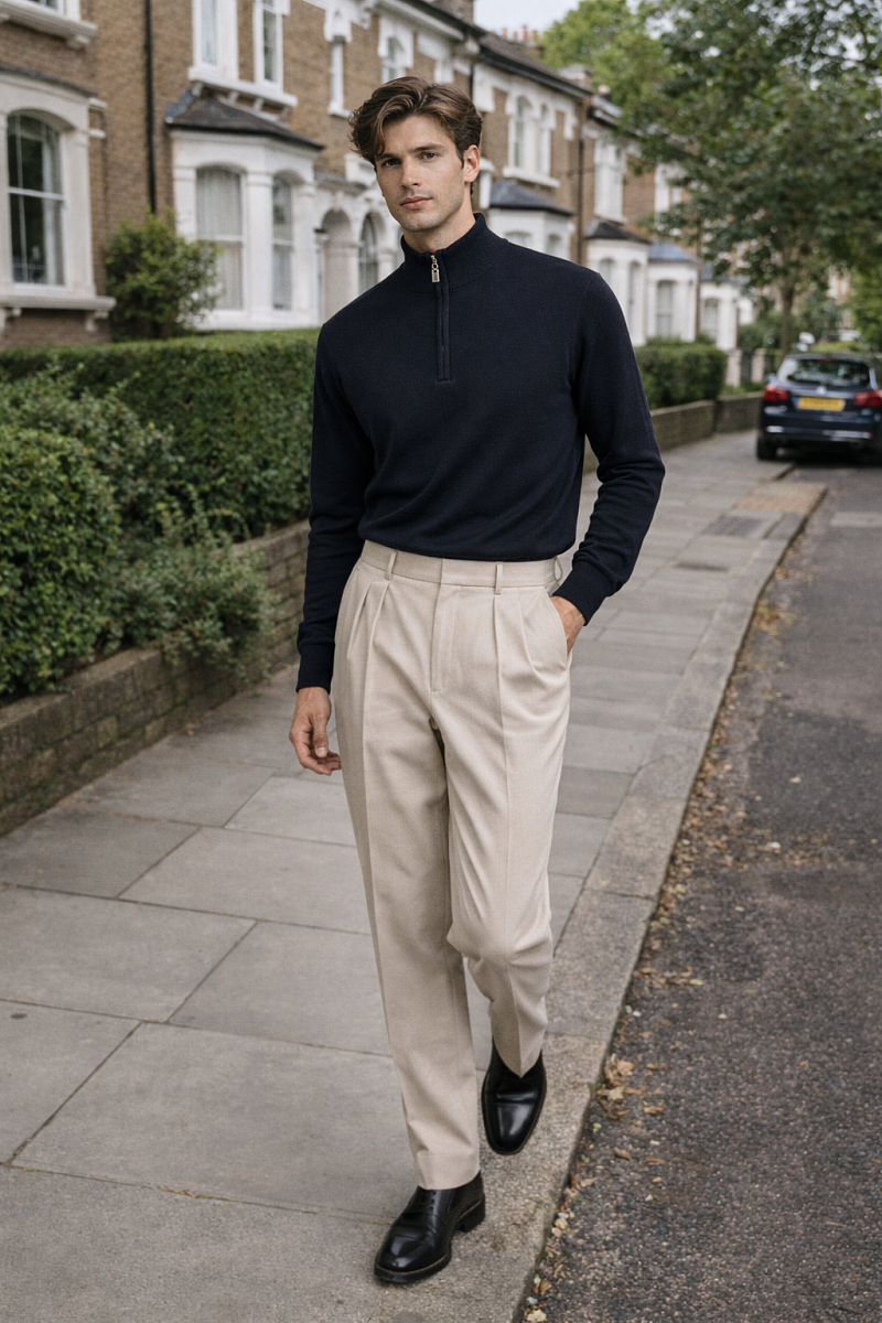 Модель выполнена из премиального смесового материала: 60% шерсть, 15% шёлк и 25% полиэстер, что обеспечивает мягкость, тепло и высокую износостойкость. Ткань приятно ощущается на коже, сохраняет форму и выглядит безупречно в течение всего дня.