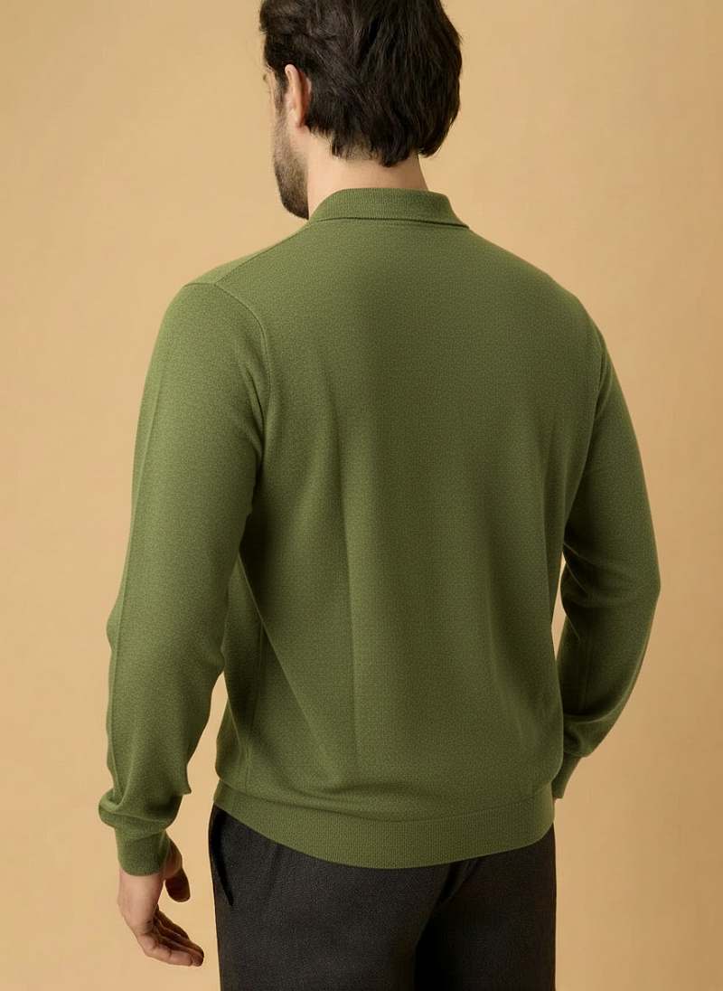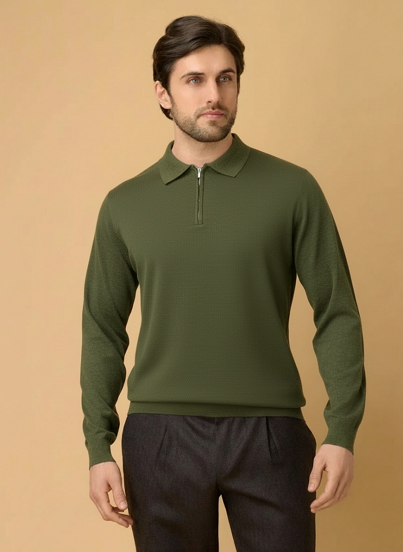 Джемпер поло с воротником. Смена времени года требует обновления гардероба. В межсезонный период не обойтись без базовых вещей, и джемпер является одним из таких вариантов. Выполнен из гипоаллергенного трикотажа - он станет стильным элементом вашего повседневного или нарядного образа. Шерсть в составе материала позволяет телу согреться, а полиэстер отвечает за сохранение первоначальной формы. Благодаря такому качественному текстилю на джемпере не будут образовываться катышки даже после многочисленных стирок. Вязаная фактура джемпера умеренно растягивается и помогает идеально сидеть по фигуре. Отложной воротник и застежка поло придают шарм изделию. Длинный рукав и оптимальная длина подарят тепло и уют в прохладную погоду. Универсальный крой и однотонный цвет дают возможность комбинировать кофту как с классическим, так и со спортивным стилями. В таком практичном джемпере вы легко можете пойти на официальное мероприятие или на работу в офис.