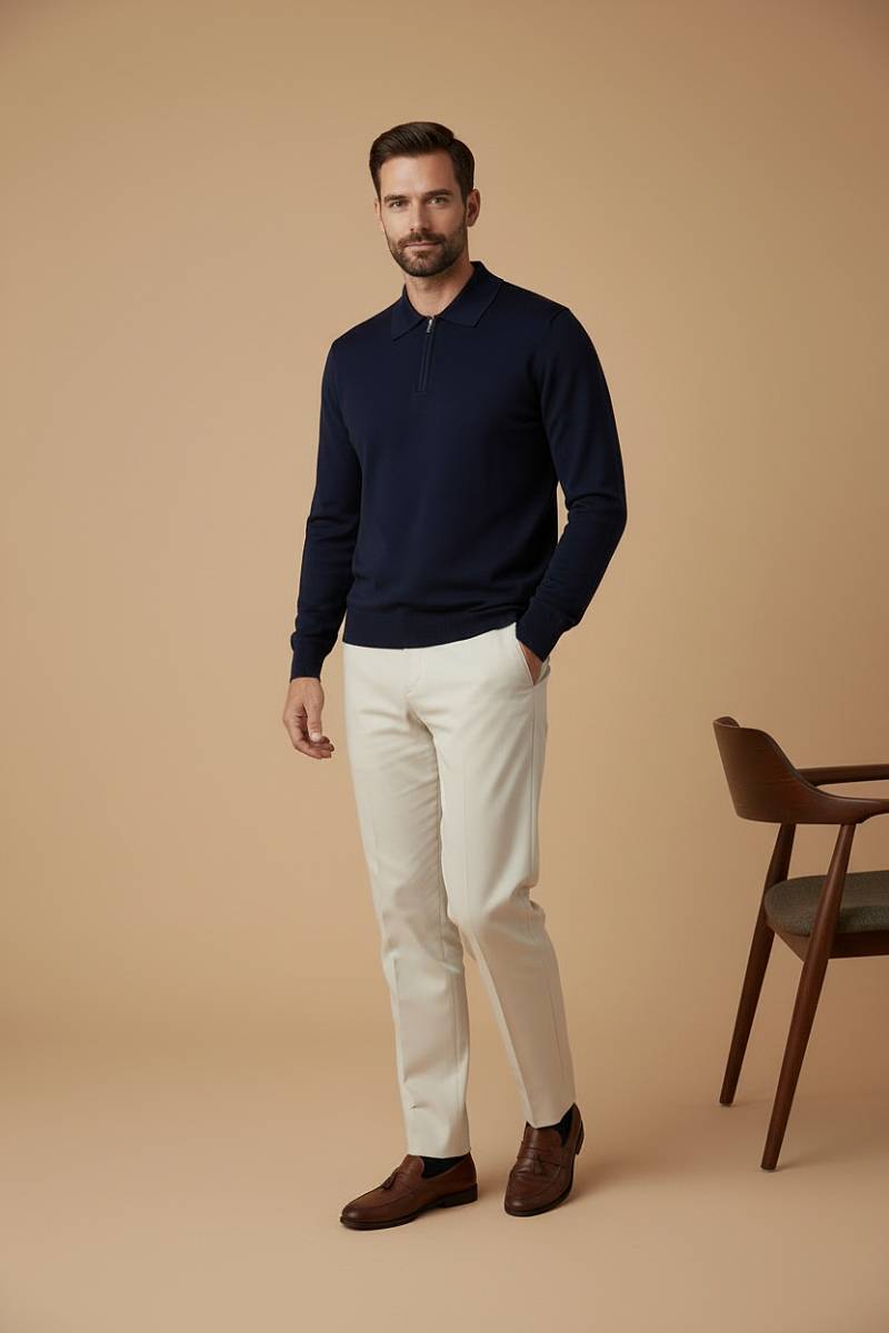 Джемпер поло с воротником. Смена времени года требует обновления гардероба. В межсезонный период не обойтись без базовых вещей, и джемпер является одним из таких вариантов. Выполнен из гипоаллергенного трикотажа - он станет стильным элементом вашего повседневного или нарядного образа. Шерсть в составе материала позволяет телу согреться, а полиэстер отвечает за сохранение первоначальной формы. Благодаря такому качественному текстилю на джемпере не будут образовываться катышки даже после многочисленных стирок. Вязаная фактура джемпера умеренно растягивается и помогает идеально сидеть по фигуре. Отложной воротник и застежка поло придают шарм изделию. Длинный рукав и оптимальная длина подарят тепло и уют в прохладную погоду. Универсальный крой и однотонный цвет дают возможность комбинировать кофту как с классическим, так и со спортивным стилями. В таком практичном джемпере вы легко можете пойти на официальное мероприятие или на работу в офис.