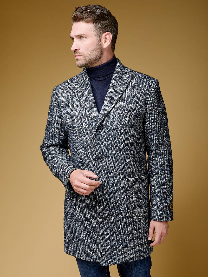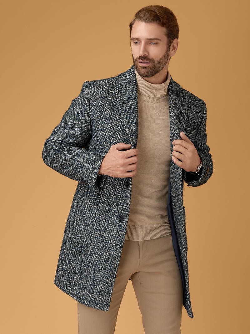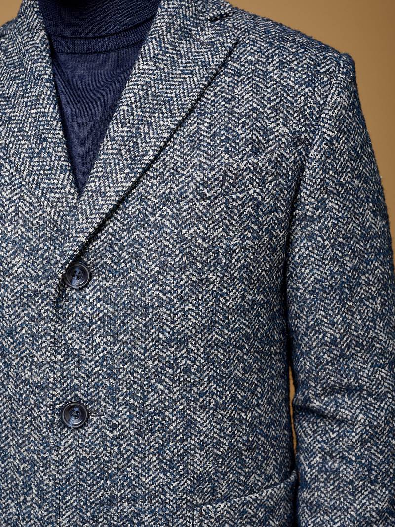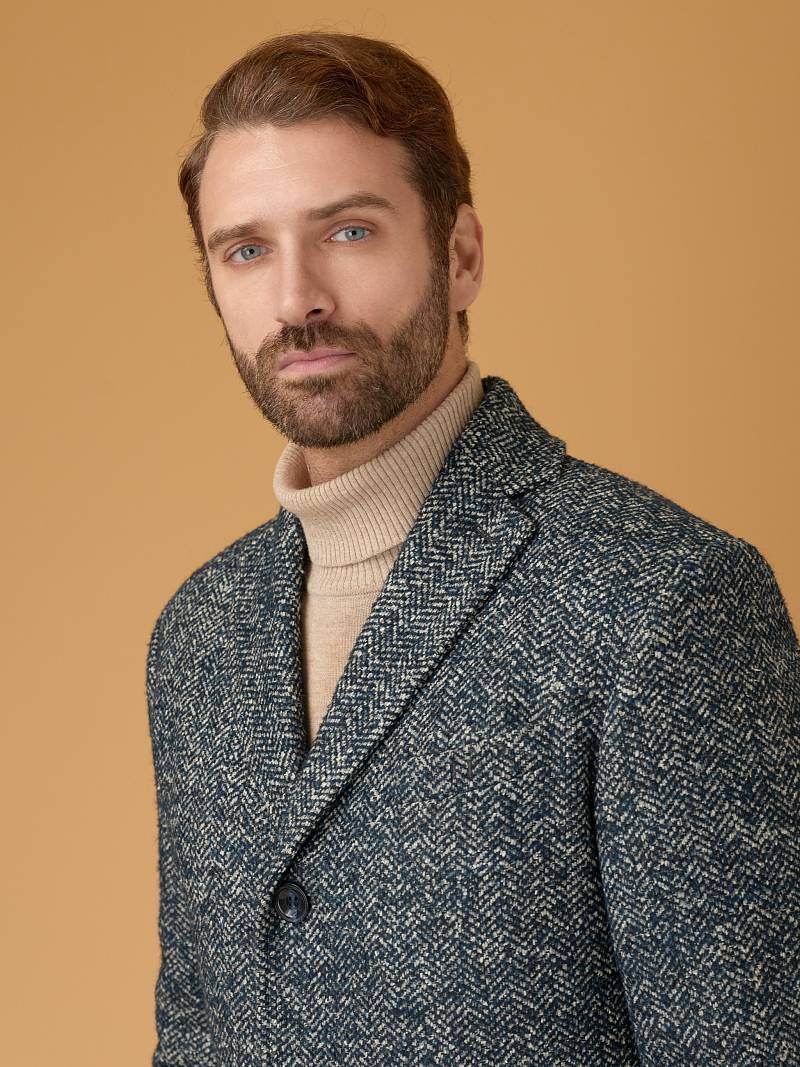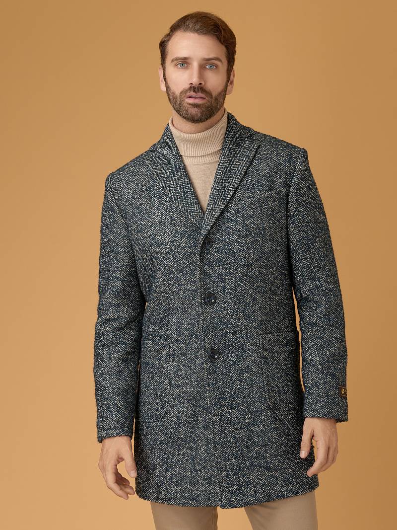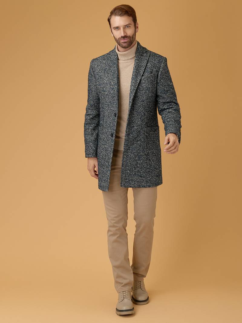 Пальто мужское утепленное с застежкой на 3 пуговицы, воротник английский с лацканами, нагрудный карман c листочкой и два нижних боковых накладных кармана. Длина изделия по спинке для роста 176 - 90см. Ткань верха: 100%шерсть. Подкладка: 50%вискоза 50%полиэстер. Утеплитель: термоплюс 60гр