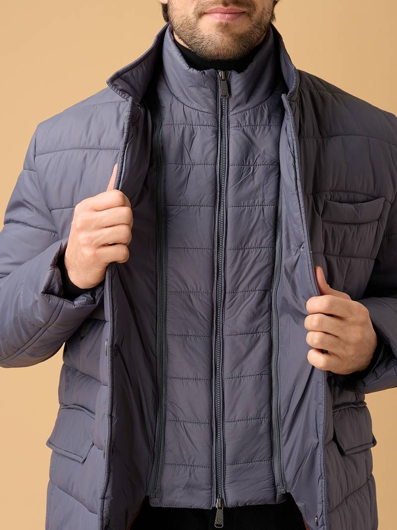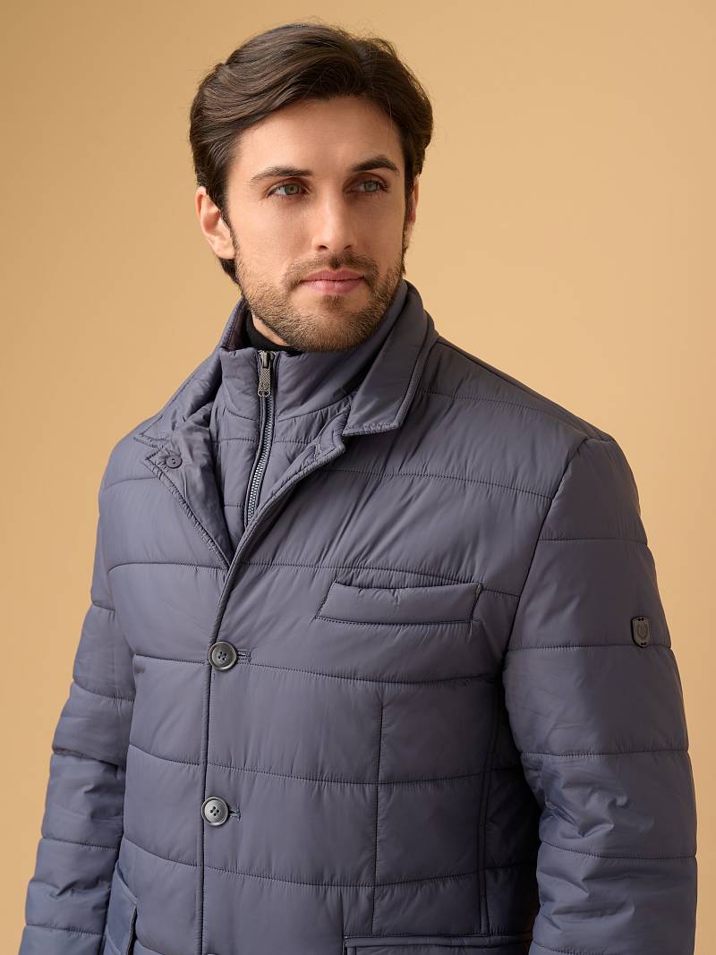 Предлагаем изысканную демисезонную модель куртки, в которой гармонично сочетаются практичность, современный дизайн и продуманная функциональность. Идеальна для прохладной погоды — сохраняет тепло и защищает от непогоды. Дизайнеры марки Bazioni выполнили куртку из мягкого матового нейлона с водоотталкивающей пропиткой, дополнили ее воротником-стойкой. Для усиления теплозащиты и вариативности образа куртка снабжена съемной манишкой на удобной молнии с двумя брендированными пуллерами. Центральная застежка на пуговицы. Два нижних боковых кармана вместительны, закрываются клапанами на магнитных кнопках, что повышает удобство использования. Верхний нагрудный карман-листочка лаконичен, без визуального перегруза. Внутри оформлена подкладкой с двумя карманами на молнии. Куртка станет комфортной спутницей аутфита с парой брюк или джинсов из ассортимента нашего магазина. Отличный выбор для городских будней, прогулок и путешествий. Дизайнеры марки BAZIONI тщательно выбирают и используют ткани и прикладные материалы только от передовых производителей.