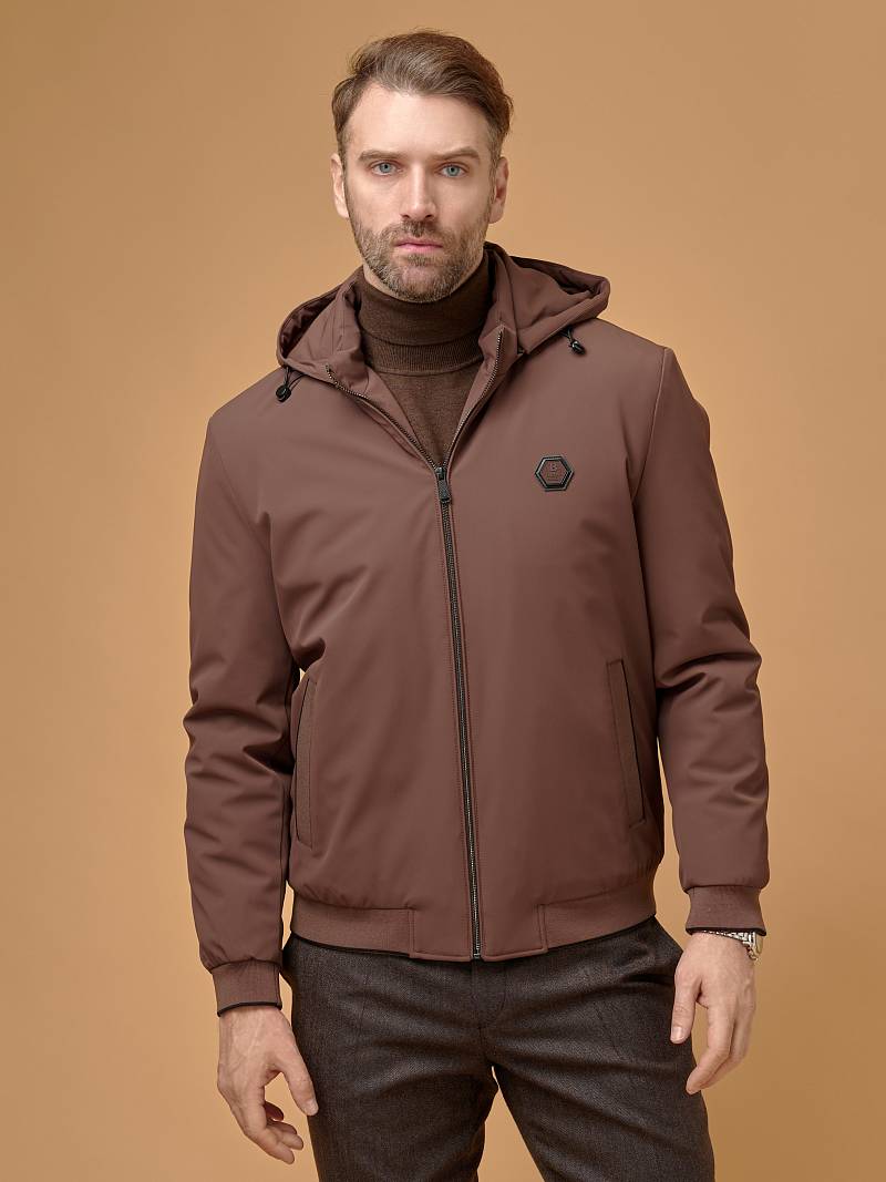 Мужская куртка - бомбер утепленная прямого  кроя идеально подходит для еврозимы. Верх выполнен из практичной ткани средней плотности с пропитками PD, WR и TPU, защищающими от влаги и ветра. Ткань с пропитками PD, WR и TPU защищает от влаги и делает материал более прочным и пластичным. Утеплитель  гарантирует тепло до -15°C. Специальные «горизонтальные мешочки», вшитые в техническую часть куртки, не допускают вылезание наполнителя наружу и его неравномерного распределения. Стандартный крой плечевой области обеспечивает свободу движения, а съемный капюшон с регулировкой шнуром-резинкой и застежкой спереди защищает от ветра. Центральная застежка на молнию, а также нижние карманы с молниями добавляют практичности. Низ куртки и манжеты из мягкого плотного трикотажа регулируют прилегание к фигуре и к руке и добавляет защиту от холода. На подкладке два кармана для удобства и хранения разных мелочей. Эта стильная и лаконичная куртка идеально подходит для городских образов, сочетая комфорт и элегантность, идеально подходит для прогулок в холодное время года, обеспечивая надежную защиту от ветра и холода.