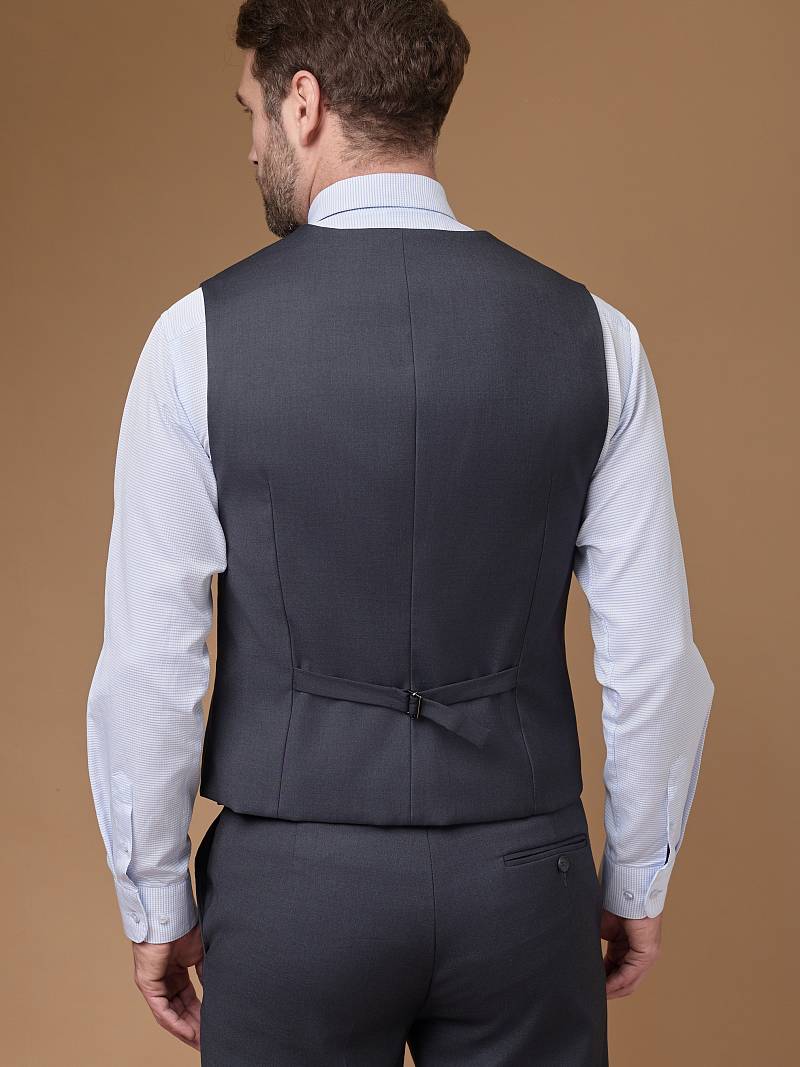 Classic fit (ПОЛУПРИЛЕГАЮЩИЙ СИЛУЭТ). Жилет мужской классический, с двумя боковыми карманами, по спинке расположен хлястик для регулировки объема в области талии.