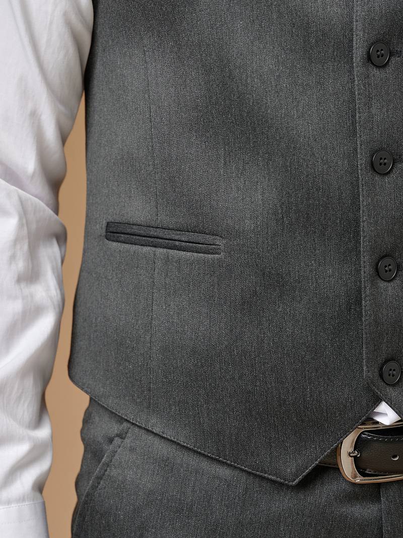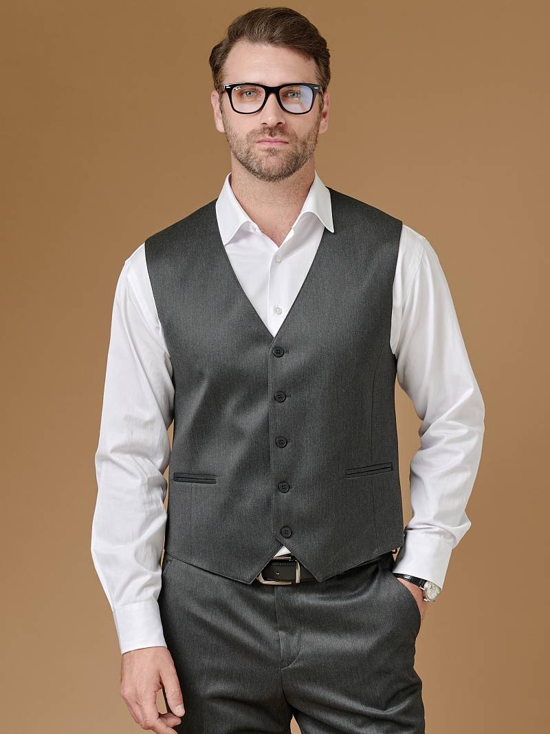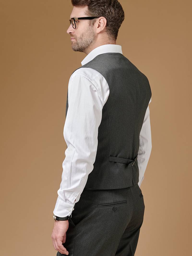 Slim fit (ПРИЛЕГАЮЩИЙ СИЛУЭТ). Жилет мужской классический, с двумя боковыми карманами, по спинке расположен хлястик для регулировки объема в области талии.