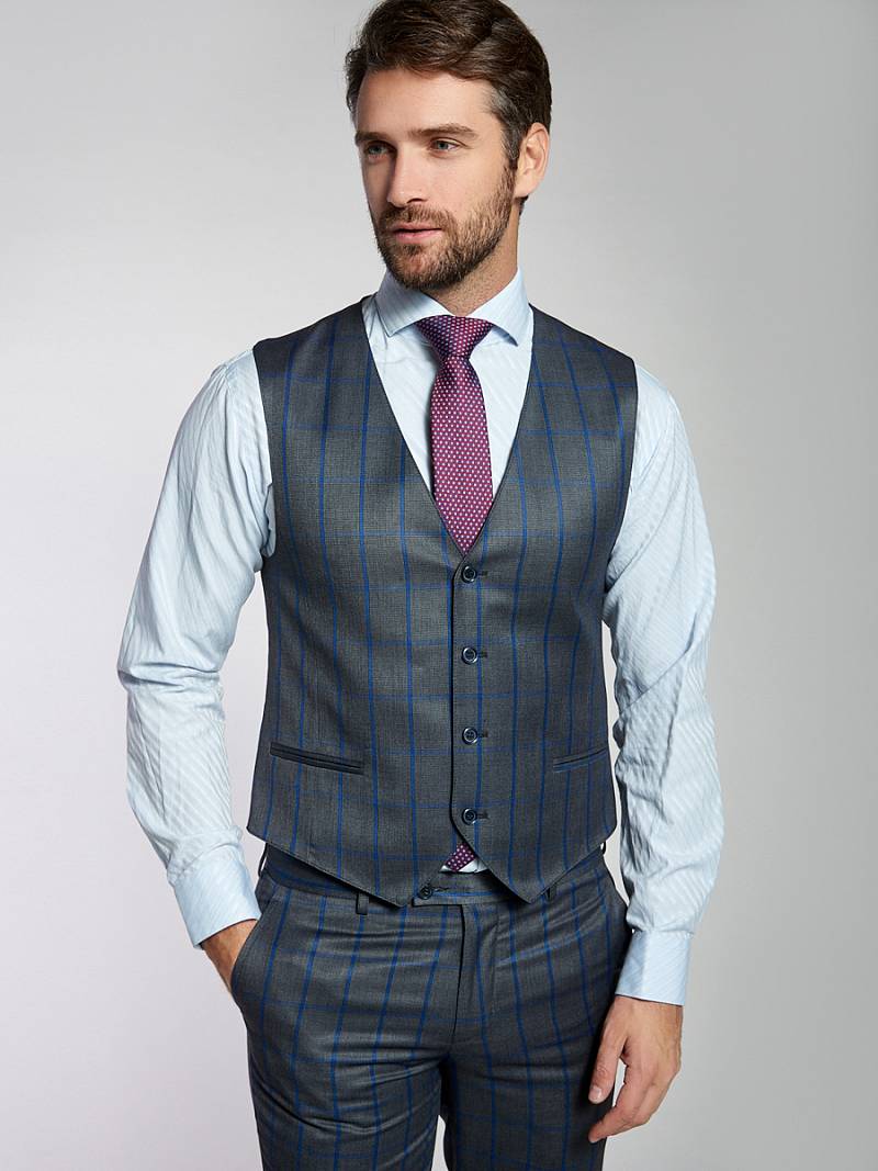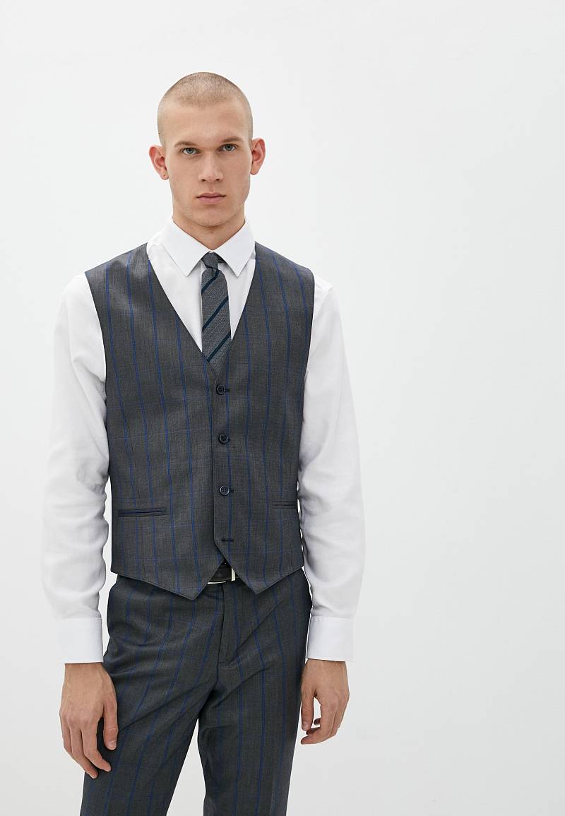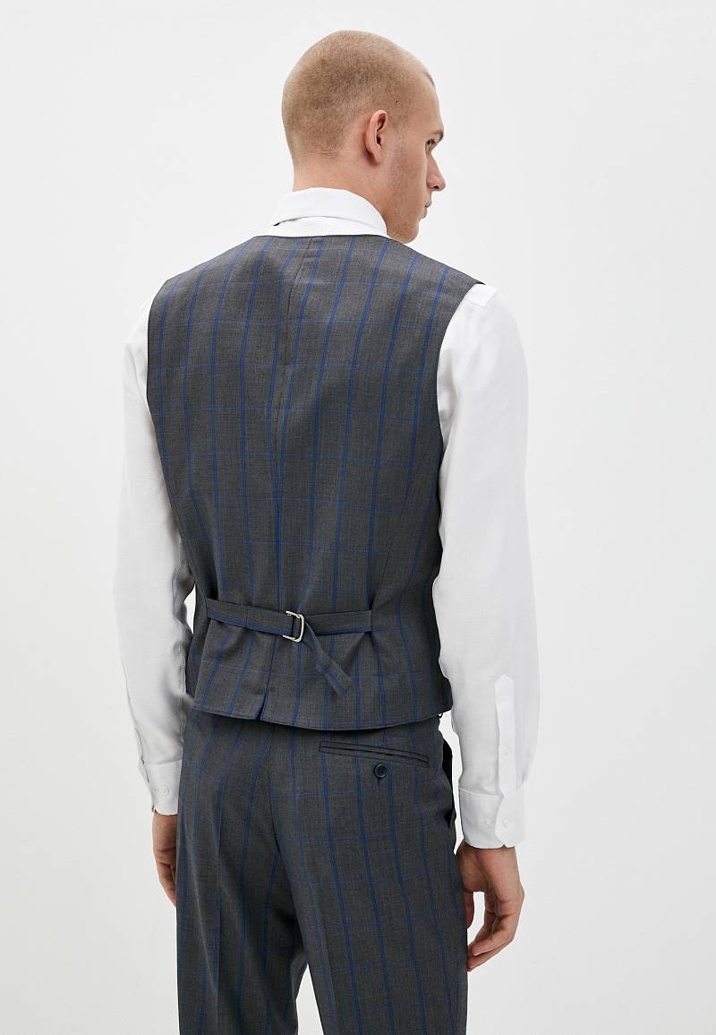 Slim fit. Жилет мужской классический, с двумя боковыми карманами "в рамку", по спинке расположен хлястик для регулировки объема в области талии.