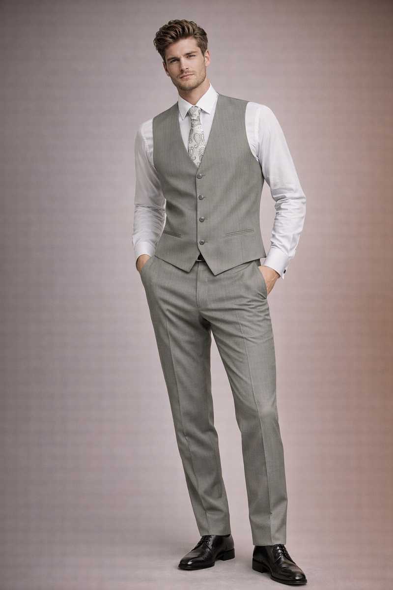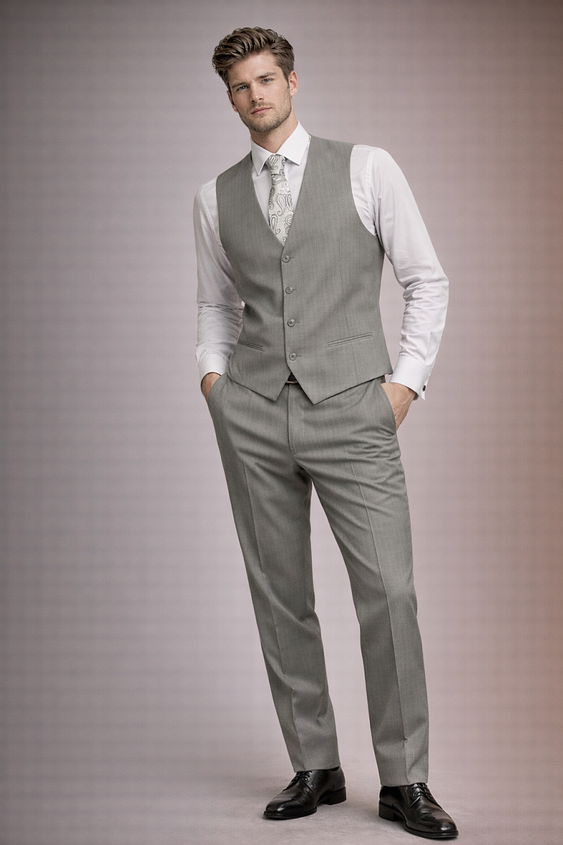 Slim fit. Жилет мужской классический, с двумя боковыми карманами, в рельефах спинки декоративные хлястики на пуговицах.