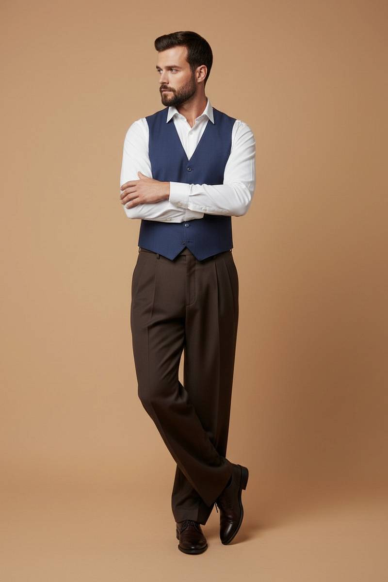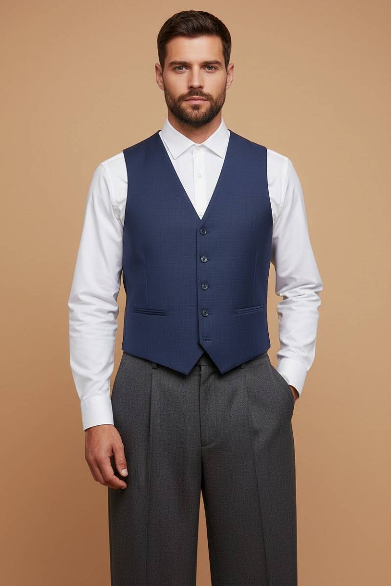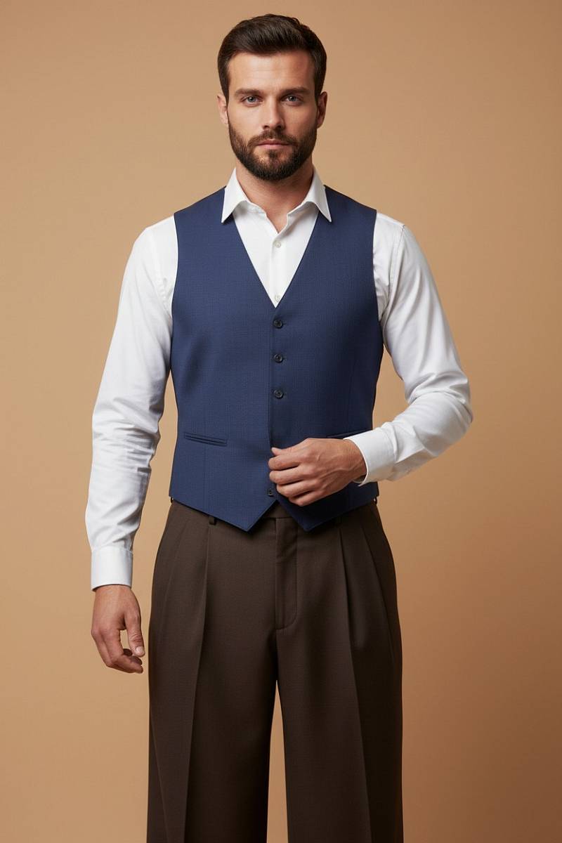 Classic fit (ПОЛУПРИЛЕГАЮЩИЙ СИЛУЭТ). Мужской классический жилет выполнен из премиальной шерстяной ткани. На полочках расположены два боковых кармана, по спинке расположен хлястик для регулировки объема в области талии. Дизайнеры марки тщательно подходят к выбору материалов. Пуговицы подбираются и красятся индивидуально под каждую ткань, а прикладные материалы используют только от передовых производителей.