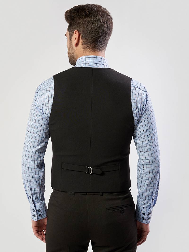 Slim fit (ПРИЛЕГАЮЩИЙ СИЛУЭТ). Жилет мужской классический, с двумя боковыми карманами, по спинке расположен хлястик для регулировки объема в области талии.