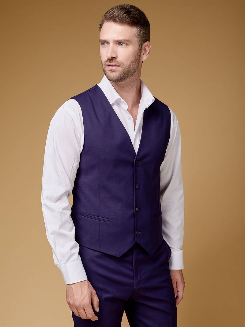 Slim fit (ПРИЛЕГАЮЩИЙ СИЛУЭТ), рекомендуется брать на размер больше. Жилет мужской классический, на полочках расположены два боковых кармана, по спинке расположен хлястик для регулировки объема в области талии.